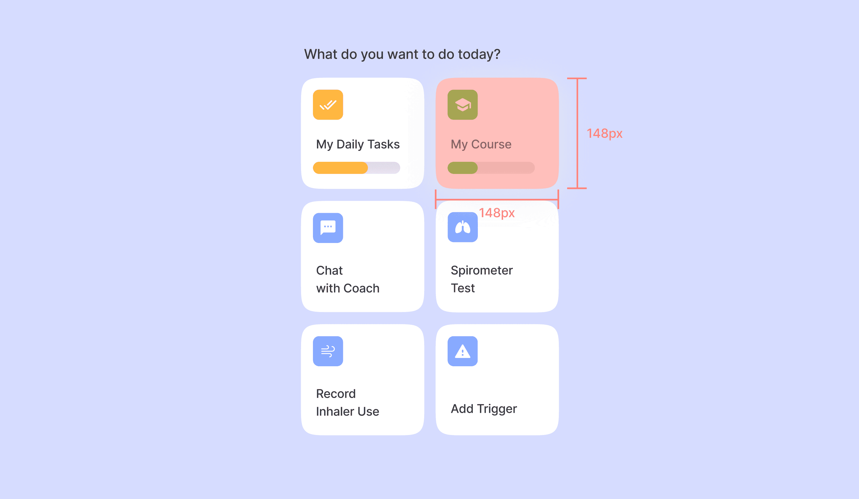 COPD patients skew older, so accessibility wasn't an edge case, it was a core design requirement. Larger touch targets, clear visual hierarchy, and simplified navigation made the app usable for people managing a serious condition. WCAG guidelines informed text sizing and language, stripping medical jargon so patients could focus on their care, not decoding it.